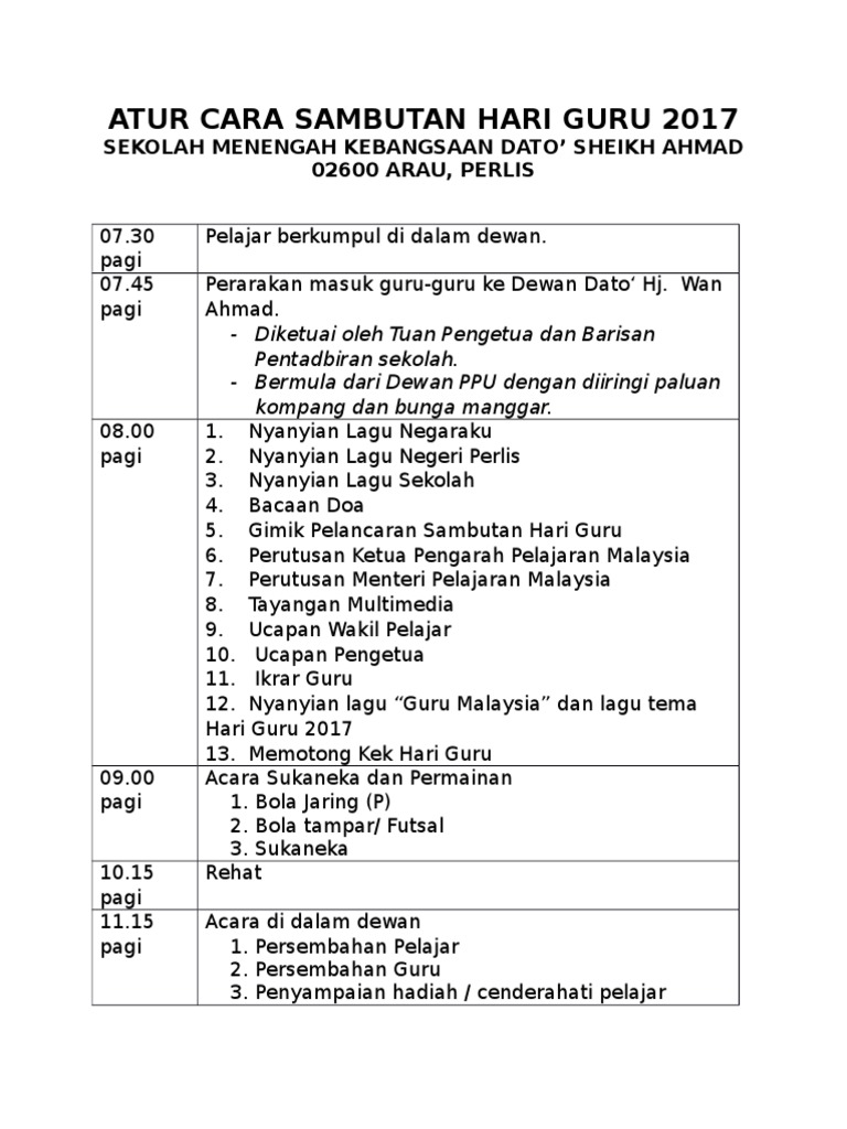 Aturcara Majlis Sambutan Hari Guru Pdf